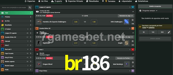 A aposta br186 oferece aos jogadores a experiência mais conveniente de apostas em eSports!